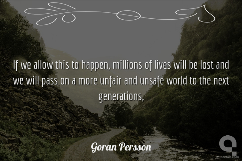 If we allow this to happen, millions of lives will be lost and we will pass on a more unfair and unsafe world to the next generations,