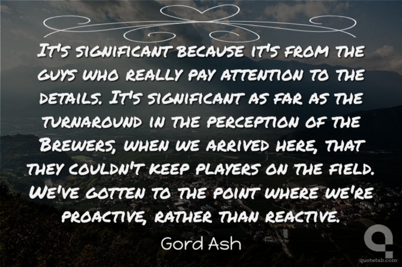 It's significant because it's from the guys who really pay attention to the details. It's significant as far as the turnaround in the perception of the Brewers, when we arrived here, that they couldn't keep players on the field. We've gotten to the point where we're proactive, rather than reactive.