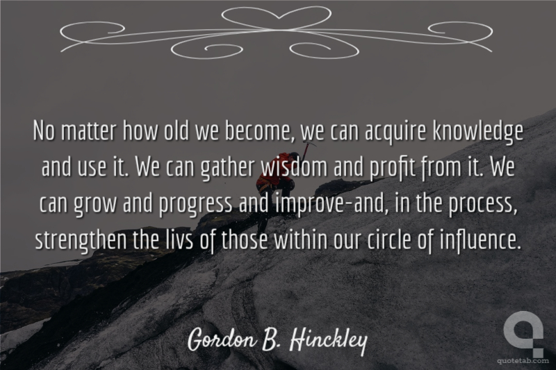 No matter how old we become, we can acquire knowledge and use it. We can gather wisdom and profit from it. We can grow and progress and improve-and, in the process, strengthen the livs of those within our circle of influence.