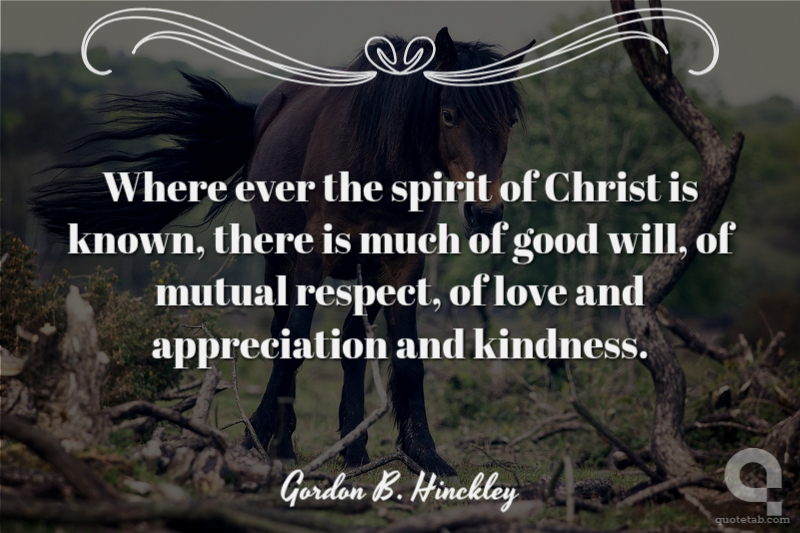 Where ever the spirit of Christ is known, there is much of good will, of mutual respect, of love and appreciation and kindness.