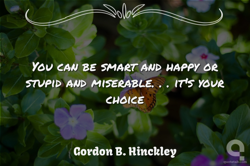 You can be smart and happy or stupid and miserable. . . it's your choice