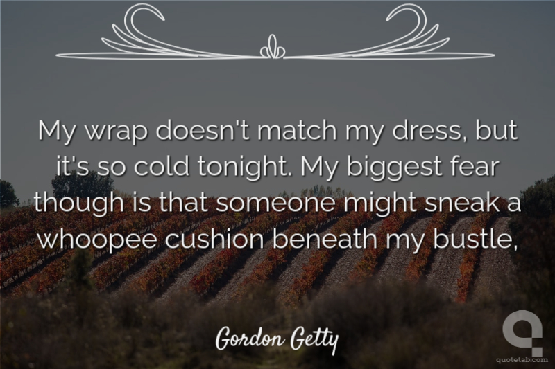 My wrap doesn't match my dress, but it's so cold tonight. My biggest fear though is that someone might sneak a whoopee cushion beneath my bustle,