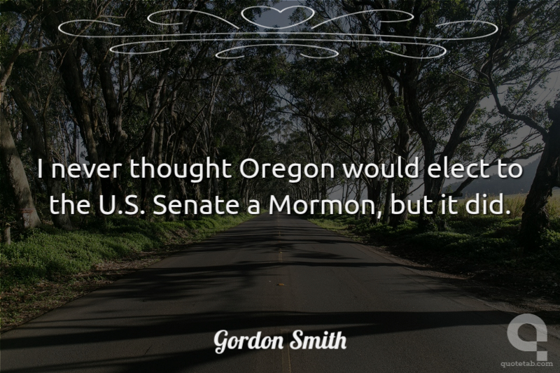 I never thought Oregon would elect to the U.S. Senate a Mormon, but it did.