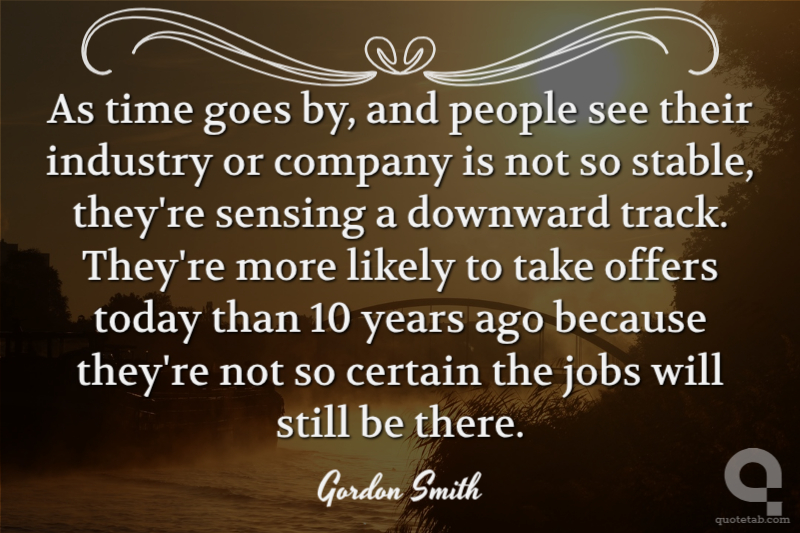 As time goes by, and people see their industry or company is not so stable, they're sensing a downward track. They're more likely to take offers today than 10 years ago because they're not so certain the jobs will still be there.