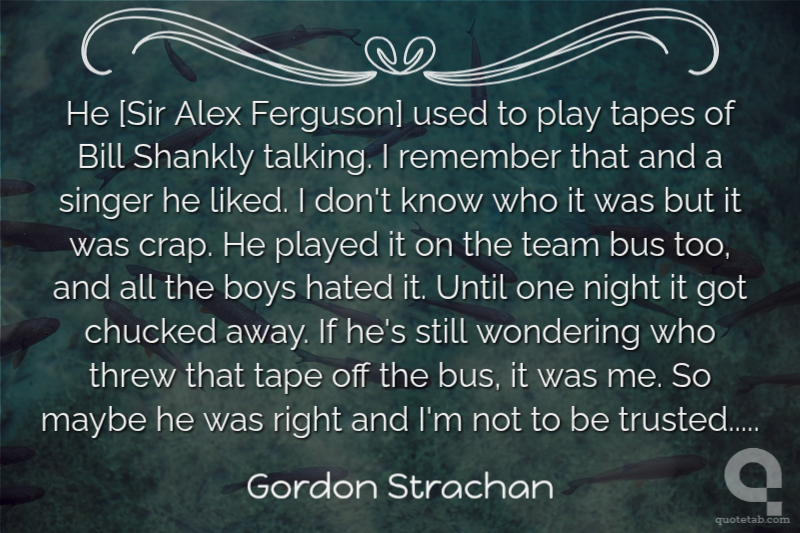 He [Sir Alex Ferguson] used to play tapes of Bill Shankly talking. I remember that and a singer he liked. I don't know who it was but it was crap. He played it on the team bus too, and all the boys hated it. Until one night it got chucked away. If he's still wondering who threw that tape off the bus, it was me. So maybe he was right and I'm not to be trusted.....