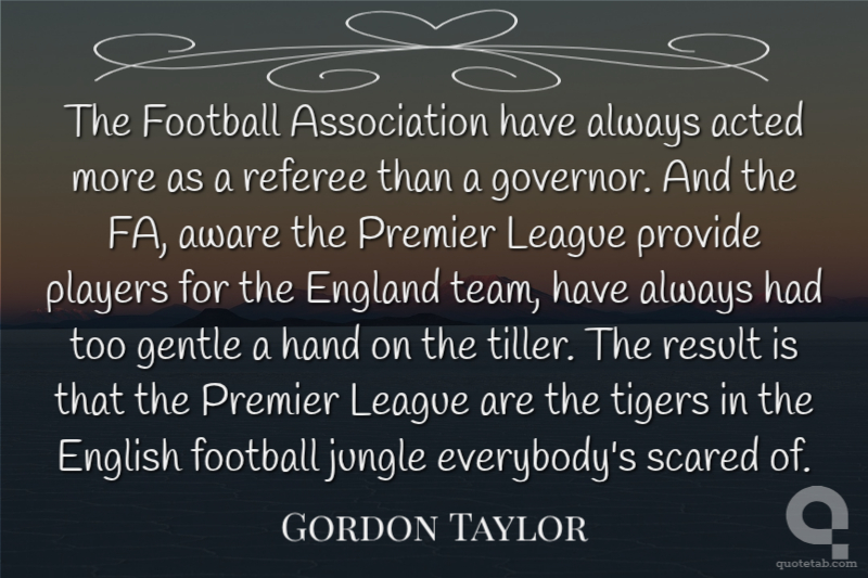 The Football Association have always acted more as a referee than a governor. And the FA, aware the Premier League provide players for the England team, have always had too gentle a hand on the tiller. The result is that the Premier League are the tigers in the English football jungle everybody's scared of.