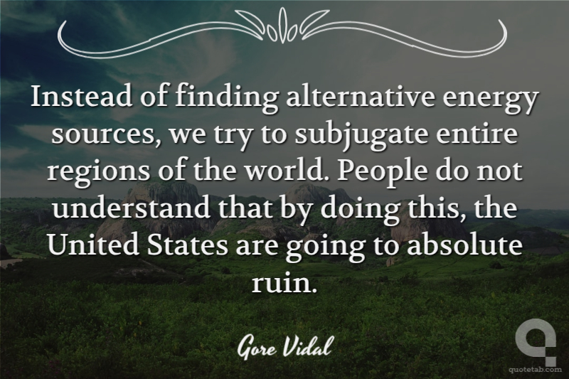 Instead of finding alternative energy sources, we try to subjugate entire regions of the world. People do not understand that by doing this, the United States are going to absolute ruin.