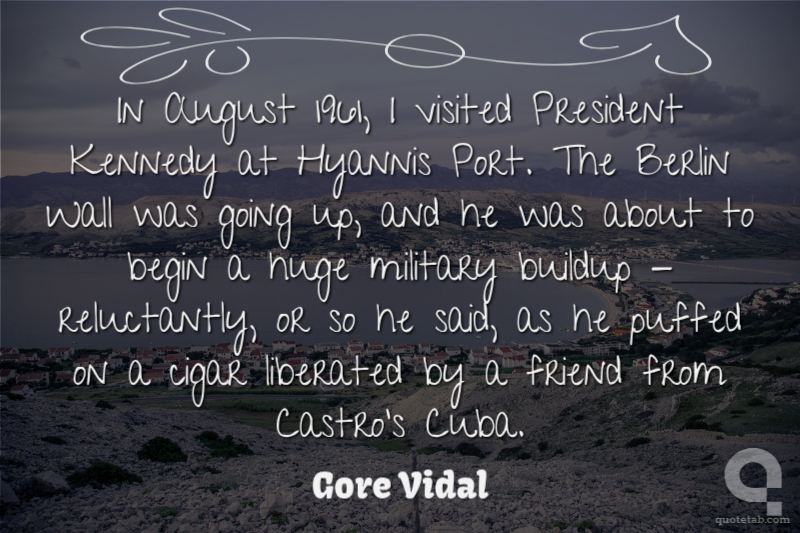 In August 1961, I visited President Kennedy at Hyannis Port. The Berlin Wall was going up, and he was about to begin a huge military buildup - reluctantly, or so he said, as he puffed on a cigar liberated by a friend from Castro's Cuba.