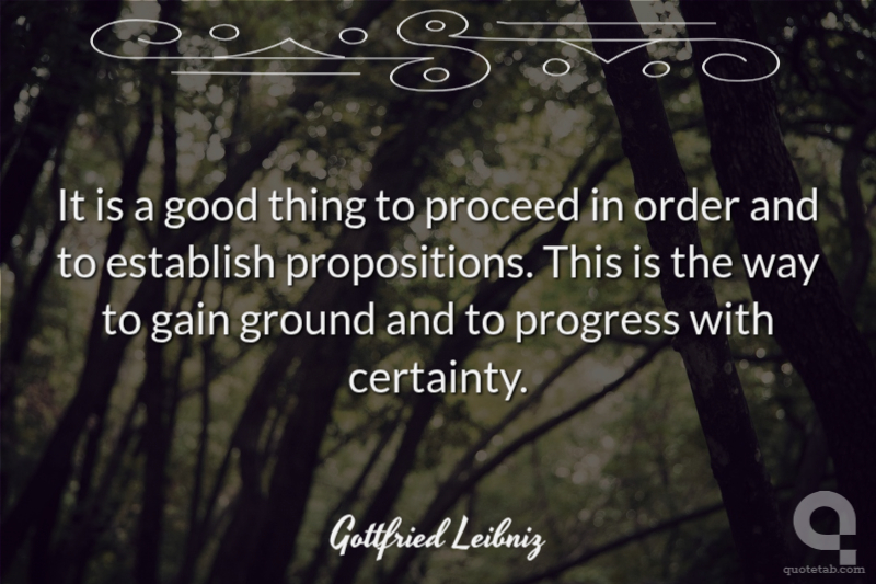 It is a good thing to proceed in order and to establish propositions. This is the way to gain ground and to progress with certainty.