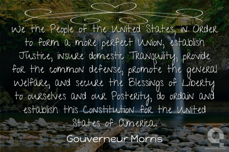 We the People of the United States, in Order to form a more perfect Union, establish Justice, insure domestic Tranquility, provide for the common defense, promote the general Welfare, and secure the Blessings of Liberty to ourselves and our Posterity, do ordain and establish this Constitution for the United States of America.