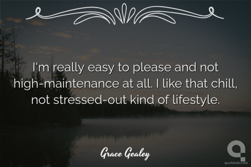 I'm really easy to please and not high-maintenance at all. I like that chill, not stressed-out kind of lifestyle.