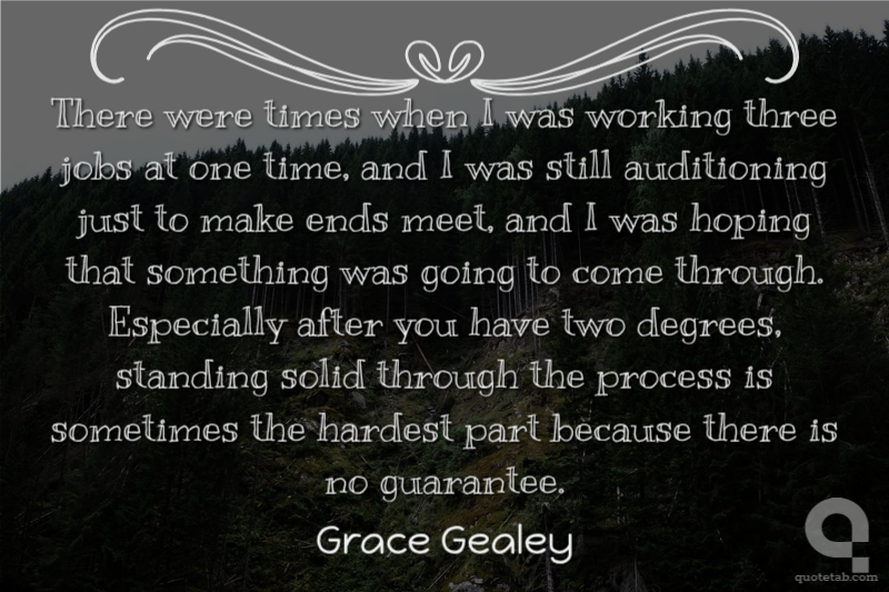There were times when I was working three jobs at one time, and I was still auditioning just to make ends meet, and I was hoping that something was going to come through. Especially after you have two degrees, standing solid through the process is sometimes the hardest part because there is no guarantee.