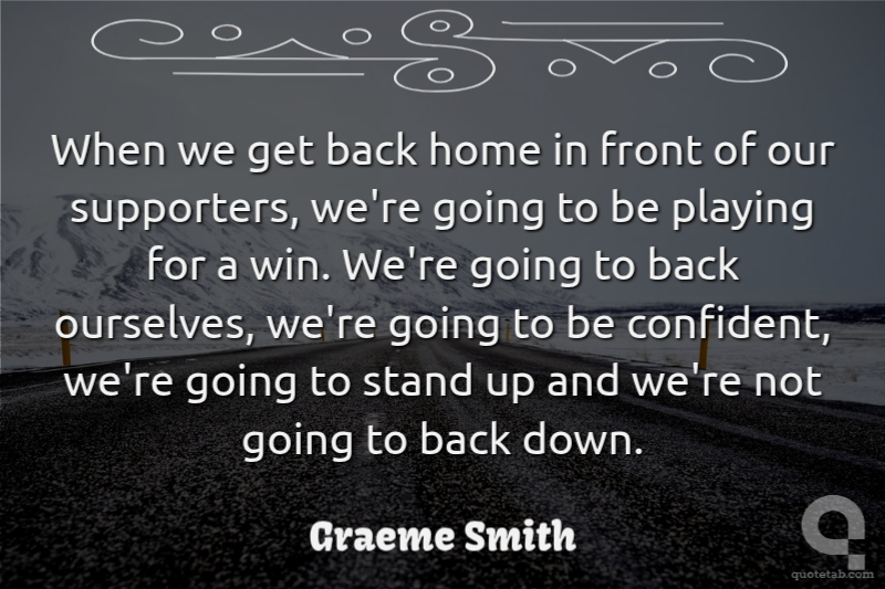 When we get back home in front of our supporters, we're going to be playing for a win. We're going to back ourselves, we're going to be confident, we're going to stand up and we're not going to back down.