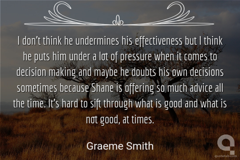 I don't think he undermines his effectiveness but I think he puts him under a lot of pressure when it comes to decision making and maybe he doubts his own decisions sometimes because Shane is offering so much advice all the time. It's hard to sift through what is good and what is not good, at times.