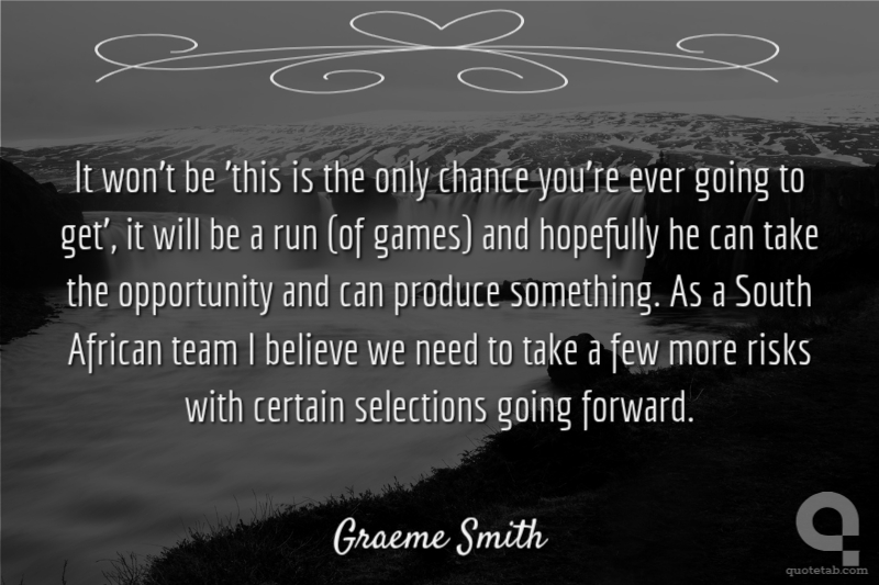 It won't be 'this is the only chance you're ever going to get', it will be a run (of games) and hopefully he can take the opportunity and can produce something. As a South African team I believe we need to take a few more risks with certain selections going forward.