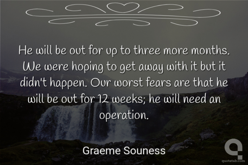 He will be out for up to three more months. We were hoping to get away with it but it didn't happen. Our worst fears are that he will be out for 12 weeks; he will need an operation.