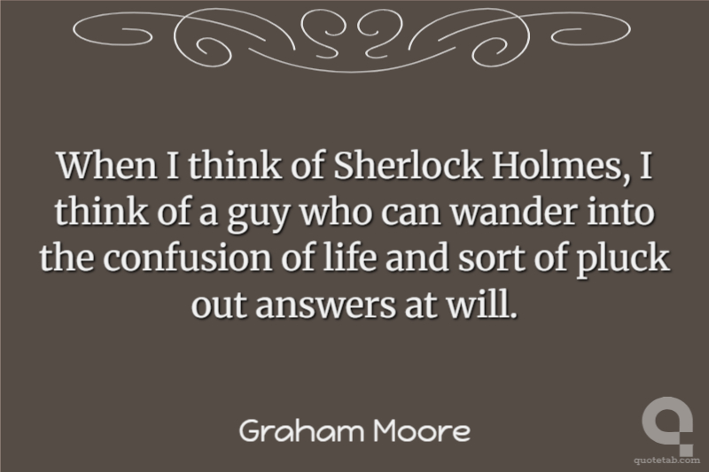 When I think of Sherlock Holmes, I think of a guy who can wander into the confusion of life and sort of pluck out answers at will.