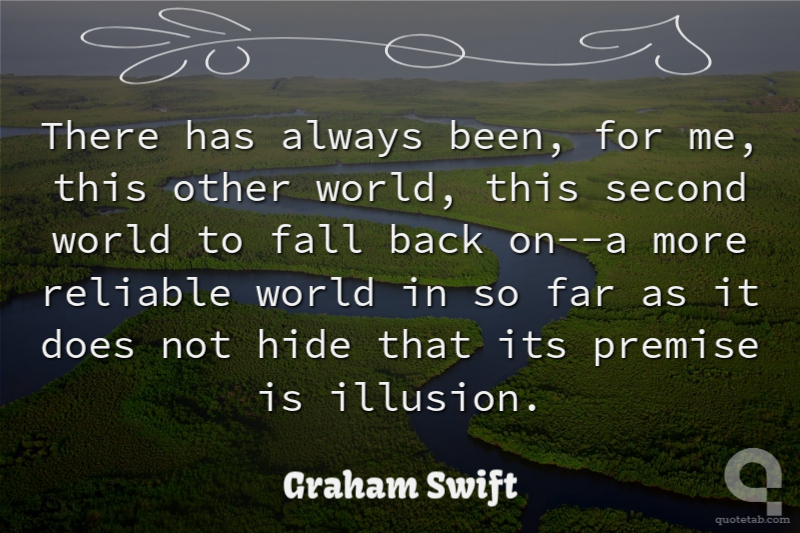 There has always been, for me, this other world, this second world to fall back on--a more reliable world in so far as it does not hide that its premise is illusion.