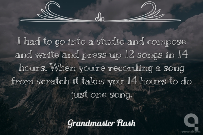 I had to go into a studio and compose and write and press up 12 songs in 14 hours. When you're recording a song from scratch it takes you 14 hours to do just one song.