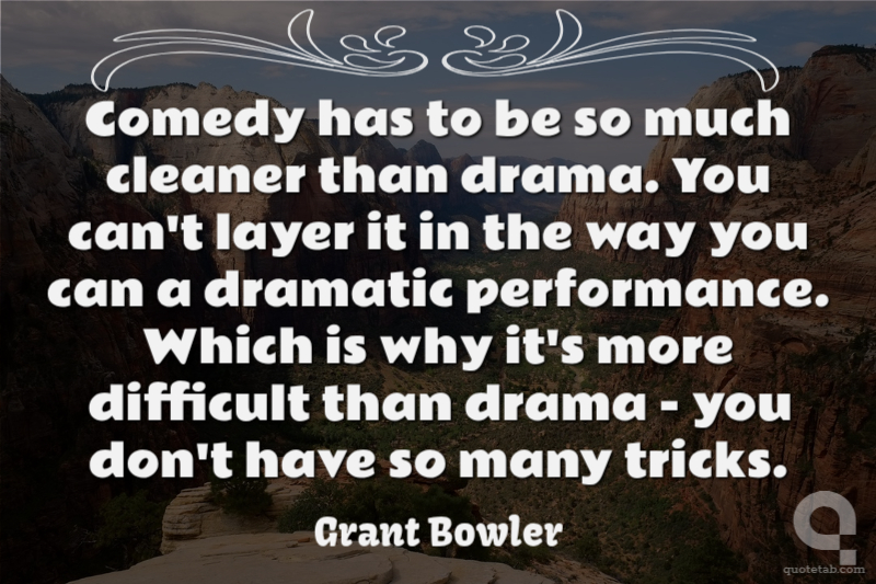 Comedy has to be so much cleaner than drama. You can't layer it in the way you can a dramatic performance. Which is why it's more difficult than drama - you don't have so many tricks.