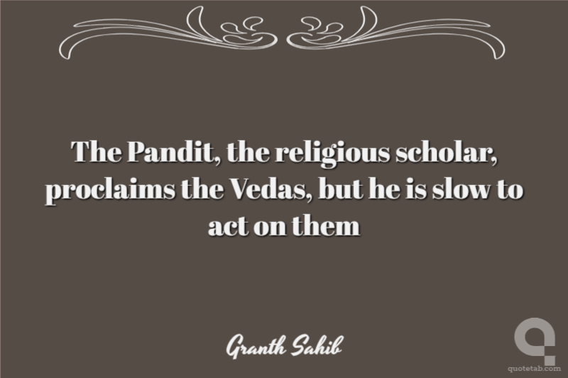 The Pandit, the religious scholar, proclaims the Vedas, but he is slow to act on them