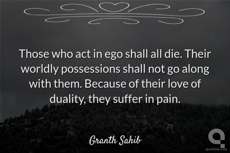 Those who act in ego shall all die. Their worldly possessions shall not go along with them. Because of their love of duality, they suffer in pain.