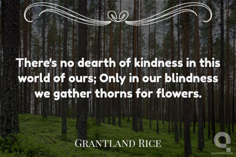 There's no dearth of kindness in this world of ours; Only in our blindness we gather thorns for flowers.