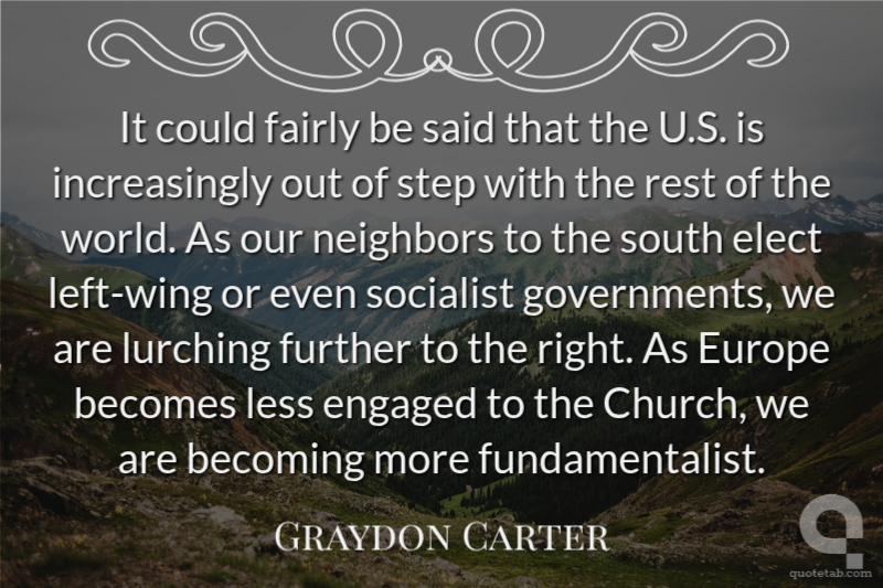 It could fairly be said that the U.S. is increasingly out of step with the rest of the world. As our neighbors to the south elect left-wing or even socialist governments, we are lurching further to the right. As Europe becomes less engaged to the Church, we are becoming more fundamentalist.