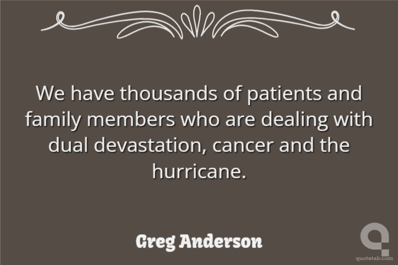 We have thousands of patients and family members who are dealing with dual devastation, cancer and the hurricane.