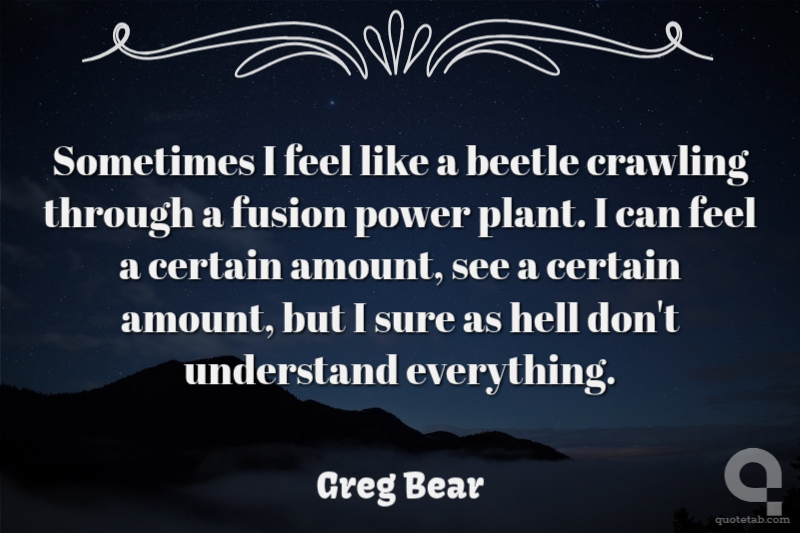 Sometimes I feel like a beetle crawling through a fusion power plant. I can feel a certain amount, see a certain amount, but I sure as hell don't understand everything.