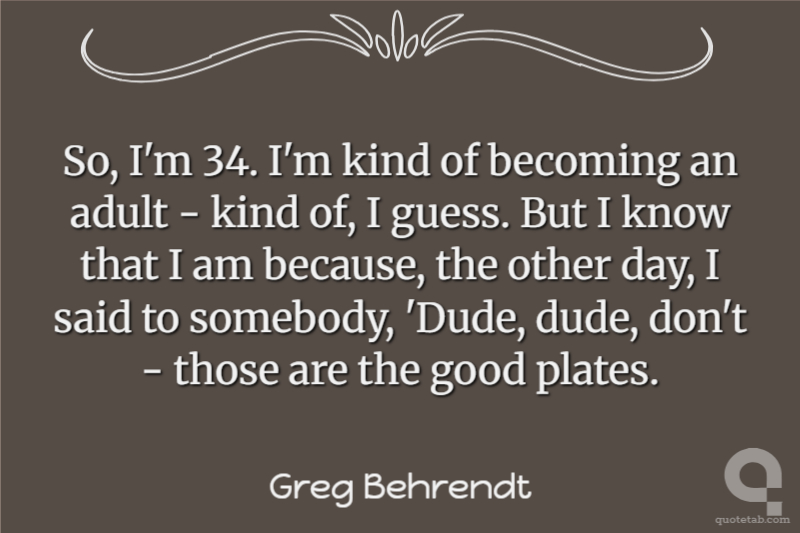 So, I'm 34. I'm kind of becoming an adult - kind of, I guess. But I know that I am because, the other day, I said to somebody, 'Dude, dude, don't - those are the good plates.