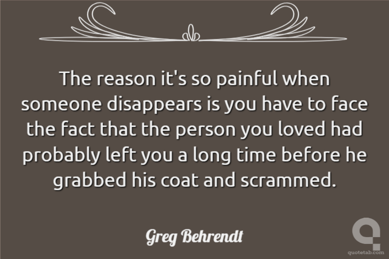 The reason it's so painful when someone disappears is you have to face the fact that the person you loved had probably left you a long time before he grabbed his coat and scrammed.
