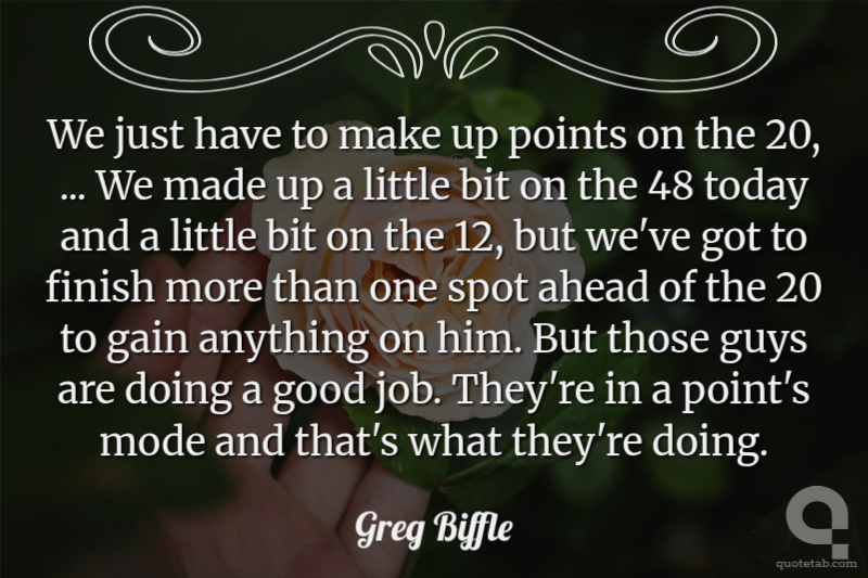 We just have to make up points on the 20, ... We made up a little bit on the 48 today and a little bit on the 12, but we've got to finish more than one spot ahead of the 20 to gain anything on him. But those guys are doing a good job. They're in a point's mode and that's what they're doing.