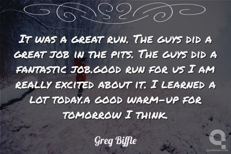 Gregory Jack "Greg" Biffleis an American professional stock car racing driver. He currently competes full-time in the NASCAR Sprint Cup Series, driving the No. 16 Ford Fusion for Roush Fenway Racing. After racing in the NASCAR Winter Heat Series in the mid-90s, he was recommended to Jack Roush by former announcer Benny Parsons. He was the 1998 NASCAR Craftsman Truck Series Rookie of the Year, shortly thereafter winning the 2000 Craftsman Truck championship. He repeated this progression in the NASCAR...