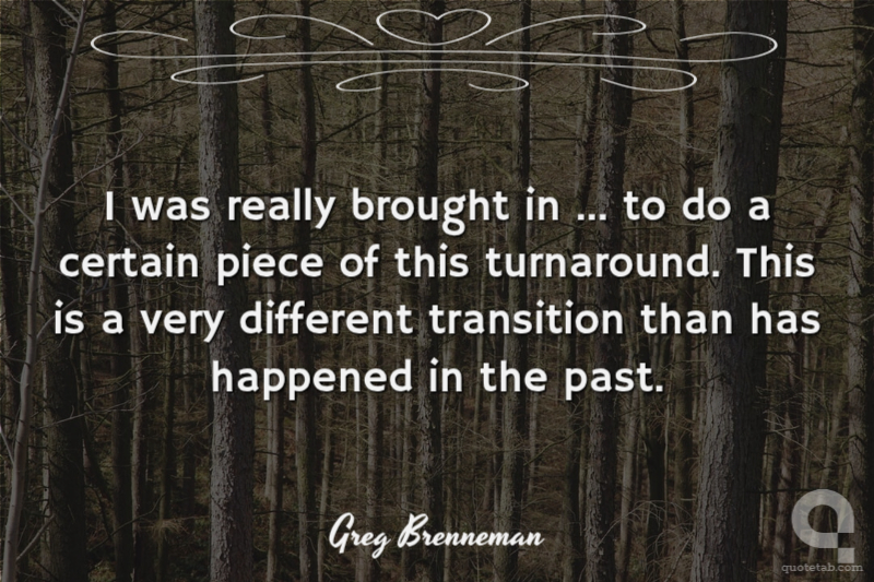 I was really brought in ... to do a certain piece of this turnaround. This is a very different transition than has happened in the past.