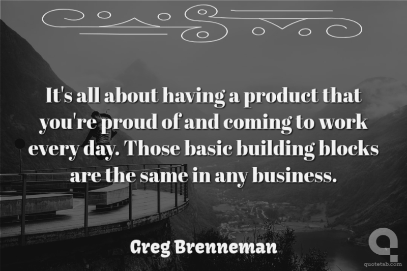 It's all about having a product that you're proud of and coming to work every day. Those basic building blocks are the same in any business.