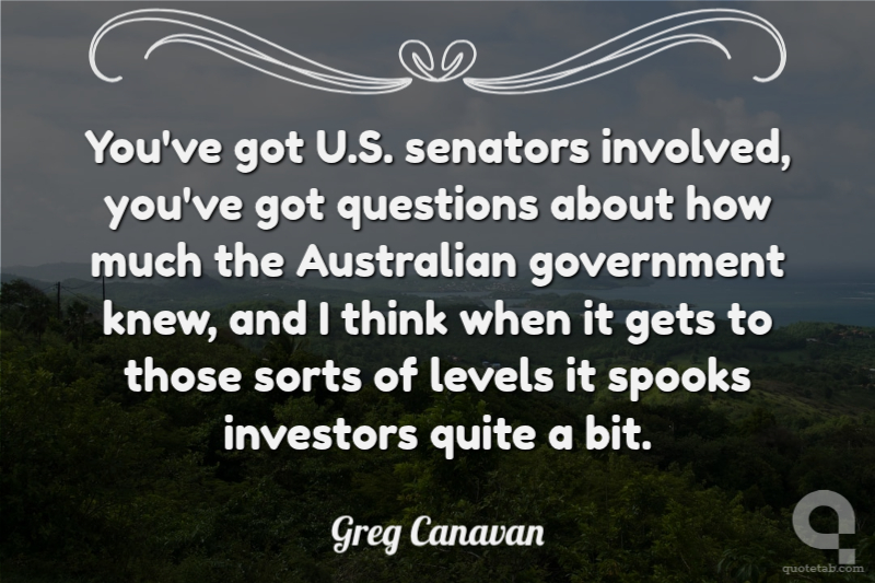 You've got U.S. senators involved, you've got questions about how much the Australian government knew, and I think when it gets to those sorts of levels it spooks investors quite a bit.