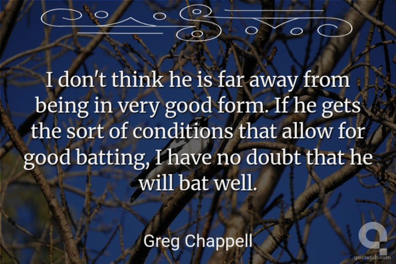 I don't think he is far away from being in very good form. If he gets the sort of conditions that allow for good batting, I have no doubt that he will bat well.