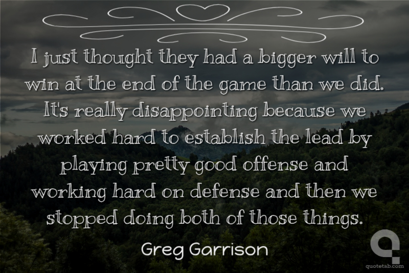 I just thought they had a bigger will to win at the end of the game than we did. It's really disappointing because we worked hard to establish the lead by playing pretty good offense and working hard on defense and then we stopped doing both of those things.