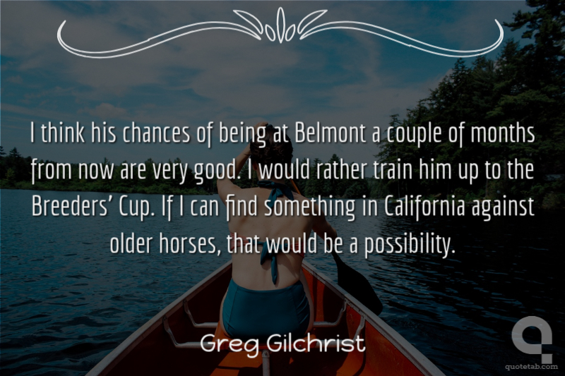 I think his chances of being at Belmont a couple of months from now are very good. I would rather train him up to the Breeders' Cup. If I can find something in California against older horses, that would be a possibility.