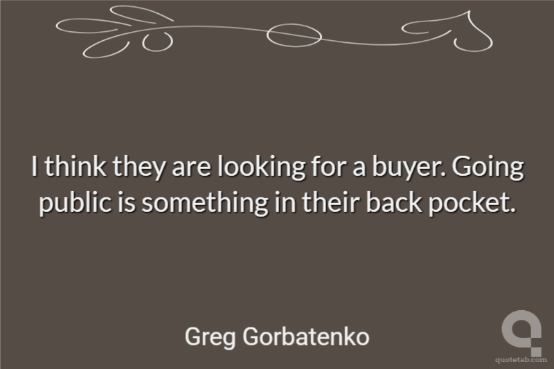 I think they are looking for a buyer. Going public is something in their back pocket.