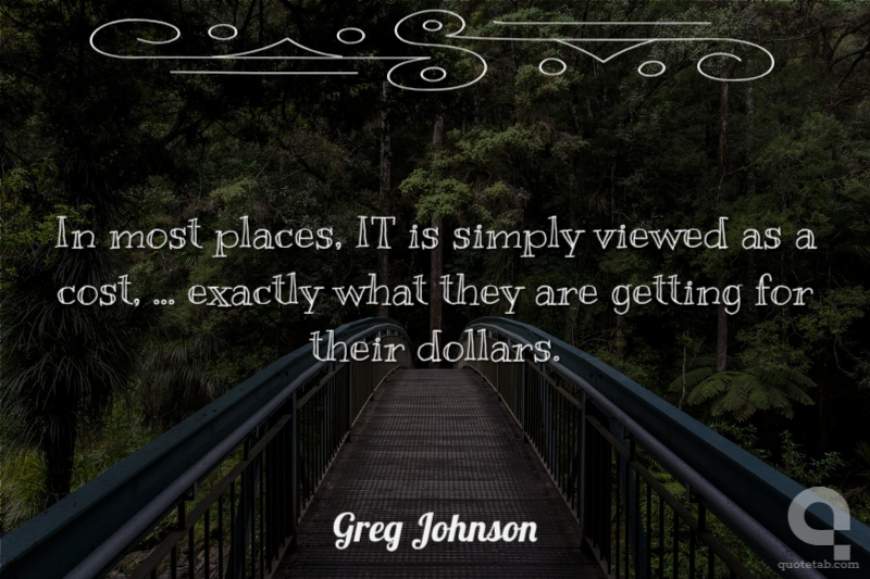 In most places, IT is simply viewed as a cost, ... exactly what they are getting for their dollars.