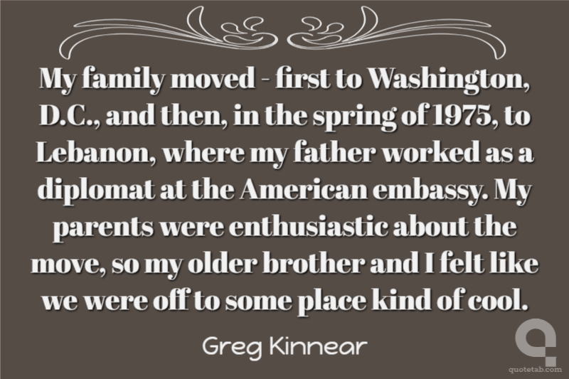 My family moved - first to Washington, D.C., and then, in the spring of 1975, to Lebanon, where my father worked as a diplomat at the American embassy. My parents were enthusiastic about the move, so my older brother and I felt like we were off to some place kind of cool.