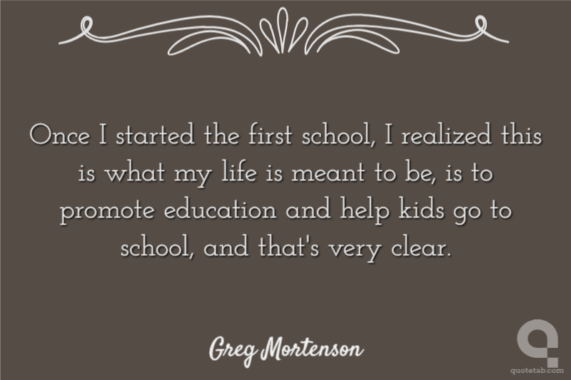 Once I started the first school, I realized this is what my life is meant to be, is to promote education and help kids go to school, and that's very clear.