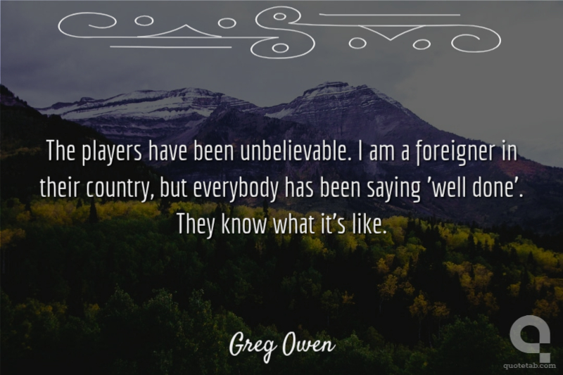 The players have been unbelievable. I am a foreigner in their country, but everybody has been saying 'well done'. They know what it's like.