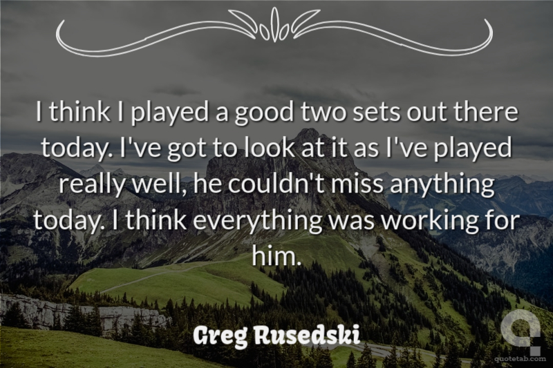 I think I played a good two sets out there today. I've got to look at it as I've played really well, he couldn't miss anything today. I think everything was working for him.