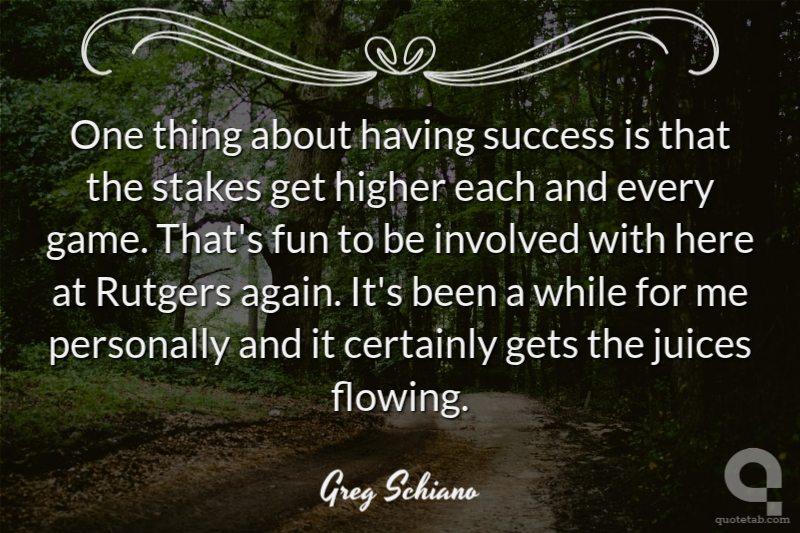 One thing about having success is that the stakes get higher each and every game. That's fun to be involved with here at Rutgers again. It's been a while for me personally and it certainly gets the juices flowing.