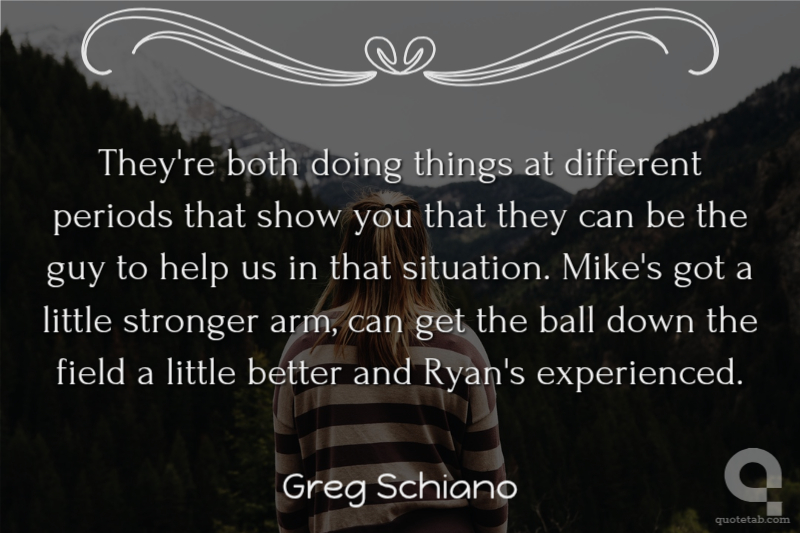 They're both doing things at different periods that show you that they can be the guy to help us in that situation. Mike's got a little stronger arm, can get the ball down the field a little better and Ryan's experienced.