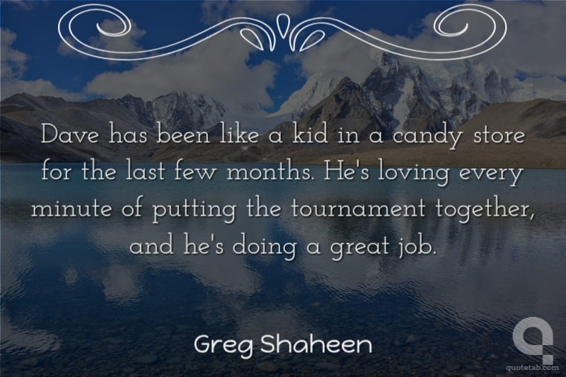 Dave has been like a kid in a candy store for the last few months. He's loving every minute of putting the tournament together, and he's doing a great job.