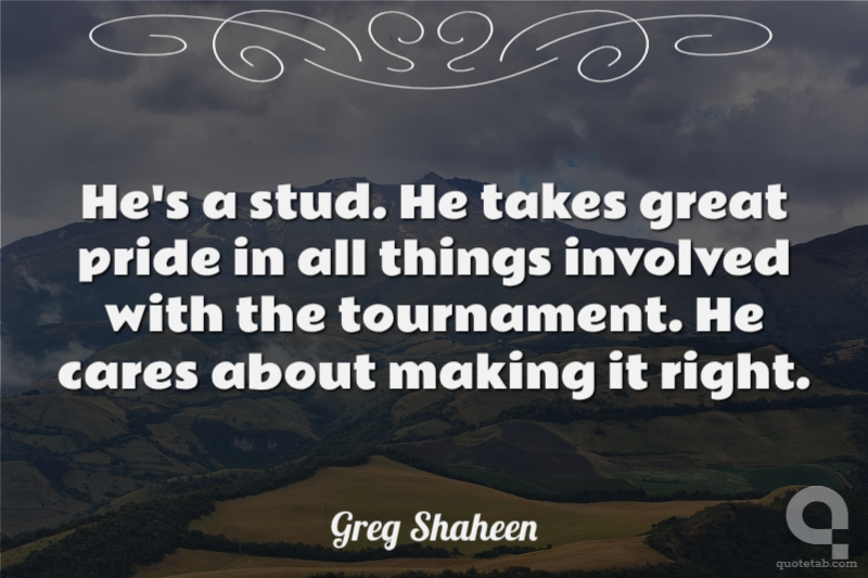 He's a stud. He takes great pride in all things involved with the tournament. He cares about making it right.